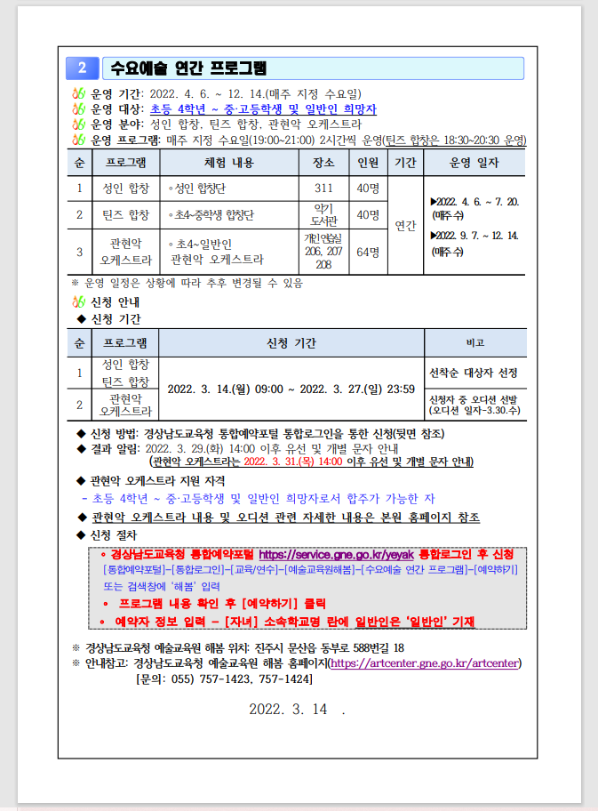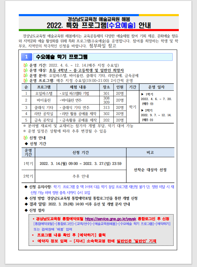 경상남도교육청 예술교육원 해봄_2022. 특화 프로그램(수요예술) 안내문.hwp