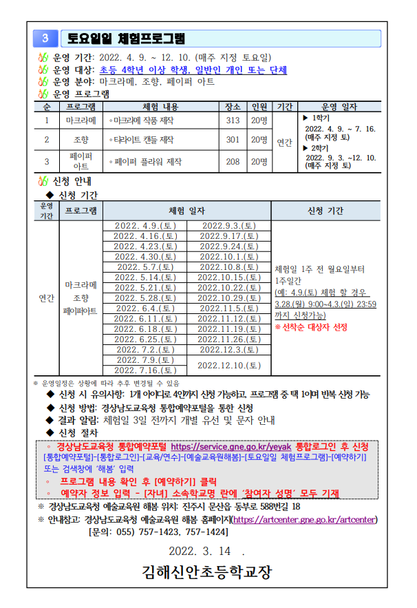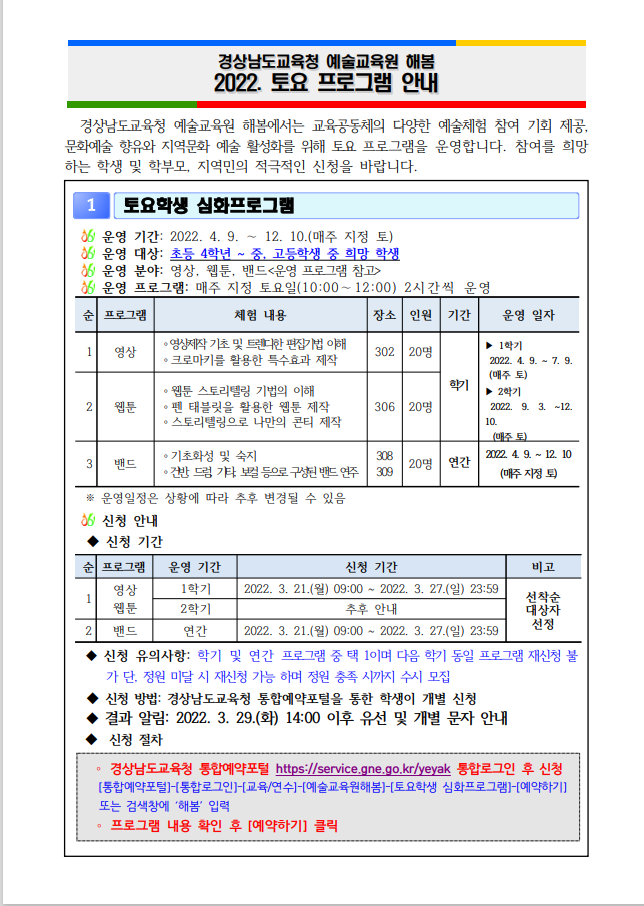 경상남도교육청 예술교육원 해봄_2022. 토요 프로그램 안내문.hwp