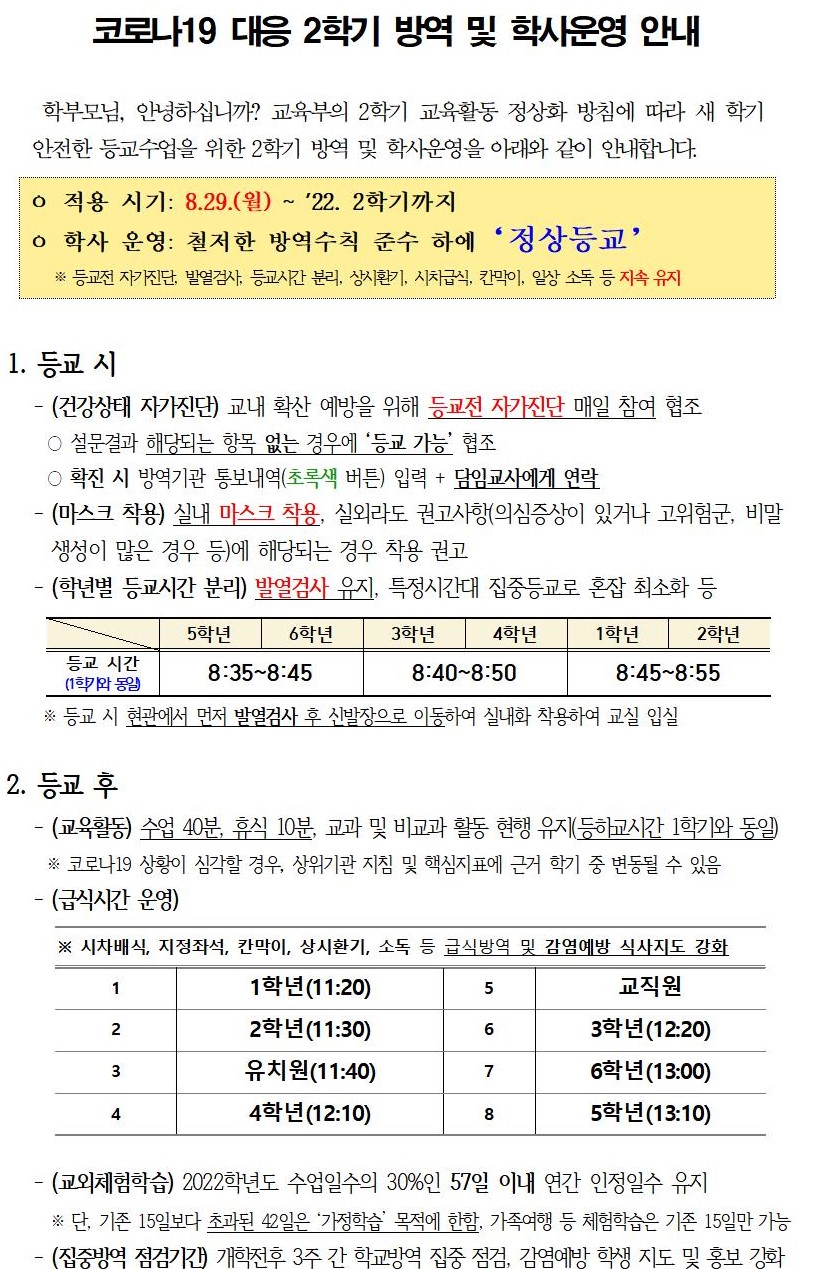 *코로나19 대응 2학기 방역 및 학사운영을 안내합니다. 학생들의 안전한 등교수업을 위해 학교 구성원 모두의 적극적인 준수와 협조를 당부드립니다.